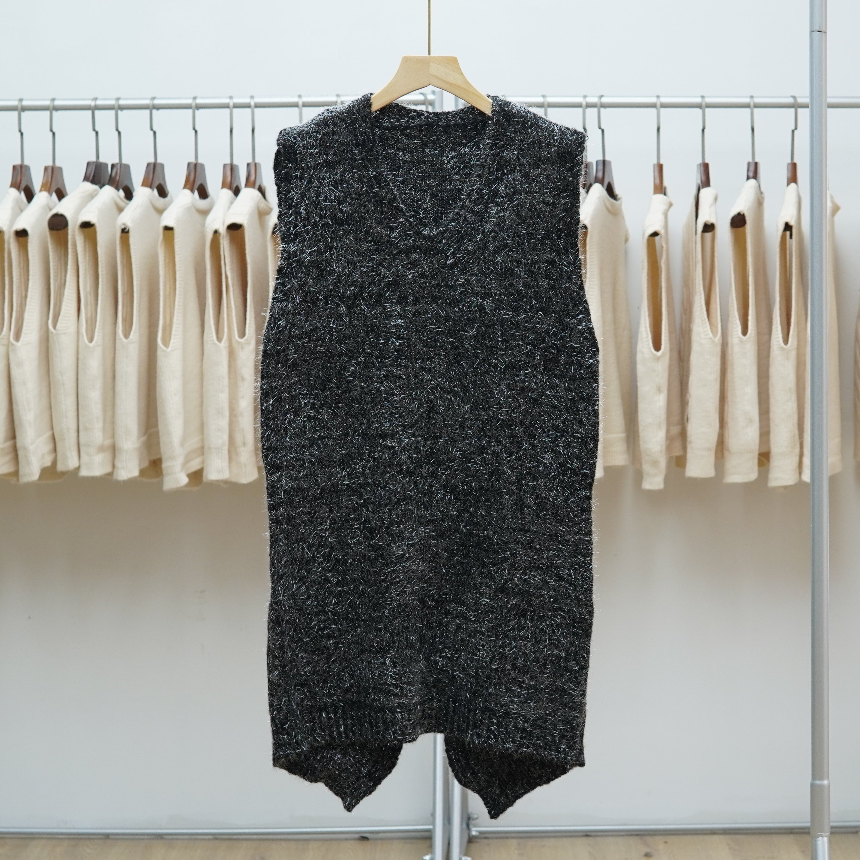 714 2025秋冬新款韩版中长款亮片针织马甲背心裙女百搭无袖坎肩