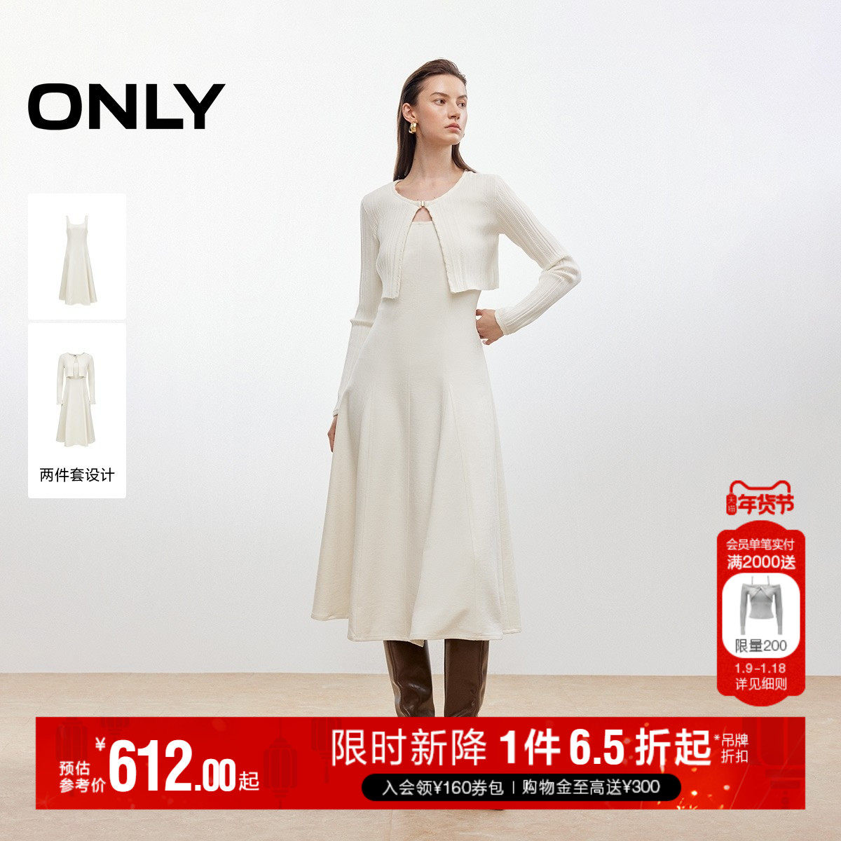 ONLY2025秋季新款优雅显瘦针织上衣拼接背心裙中长裙套装连衣裙女