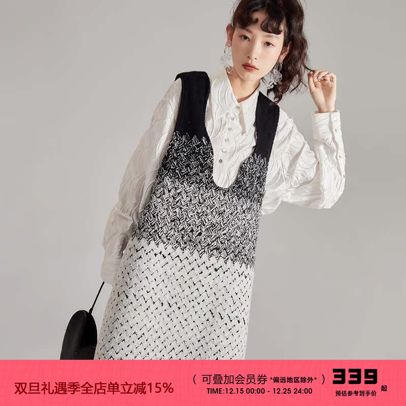 有耳uare原创设计 冷静万人迷 叠穿针织马甲背心毛衣连衣裙中长款