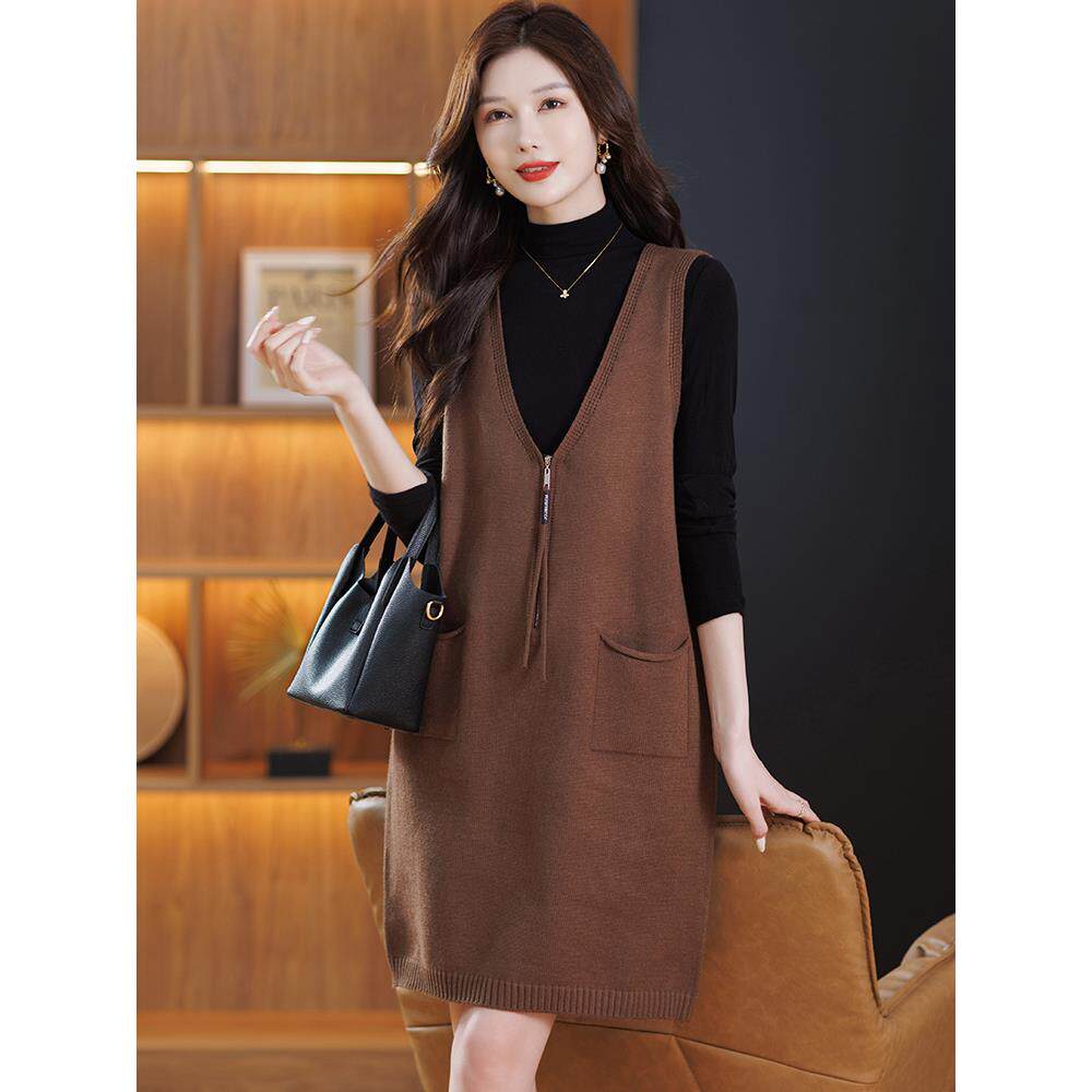 中长款马甲裙2025春秋新款针织背心连衣裙宽松显瘦洋气马夹女外搭