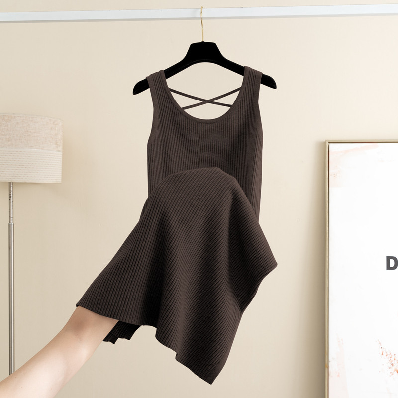 圆领针织吊带背心连衣裙女秋冬新款中长款a字裙过膝内搭打底裙子