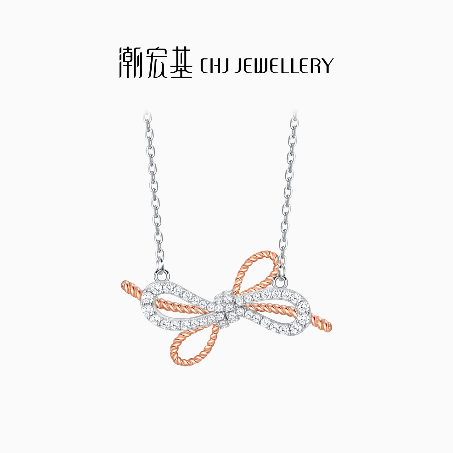 潮宏基小确幸s925银项链银饰颈饰坠链蝴蝶结甜美Ins风生日礼物