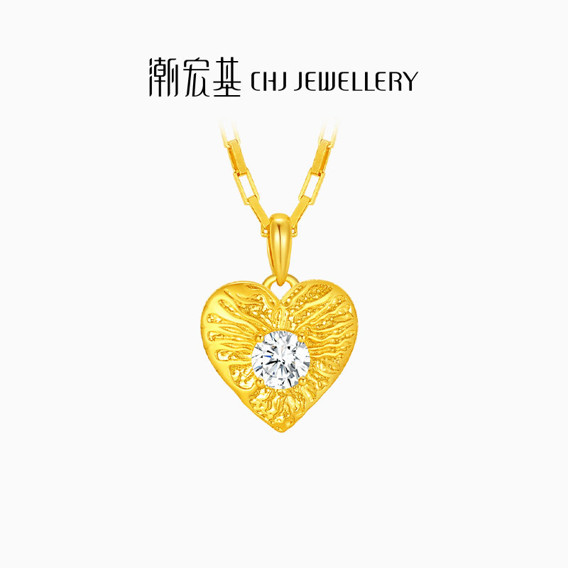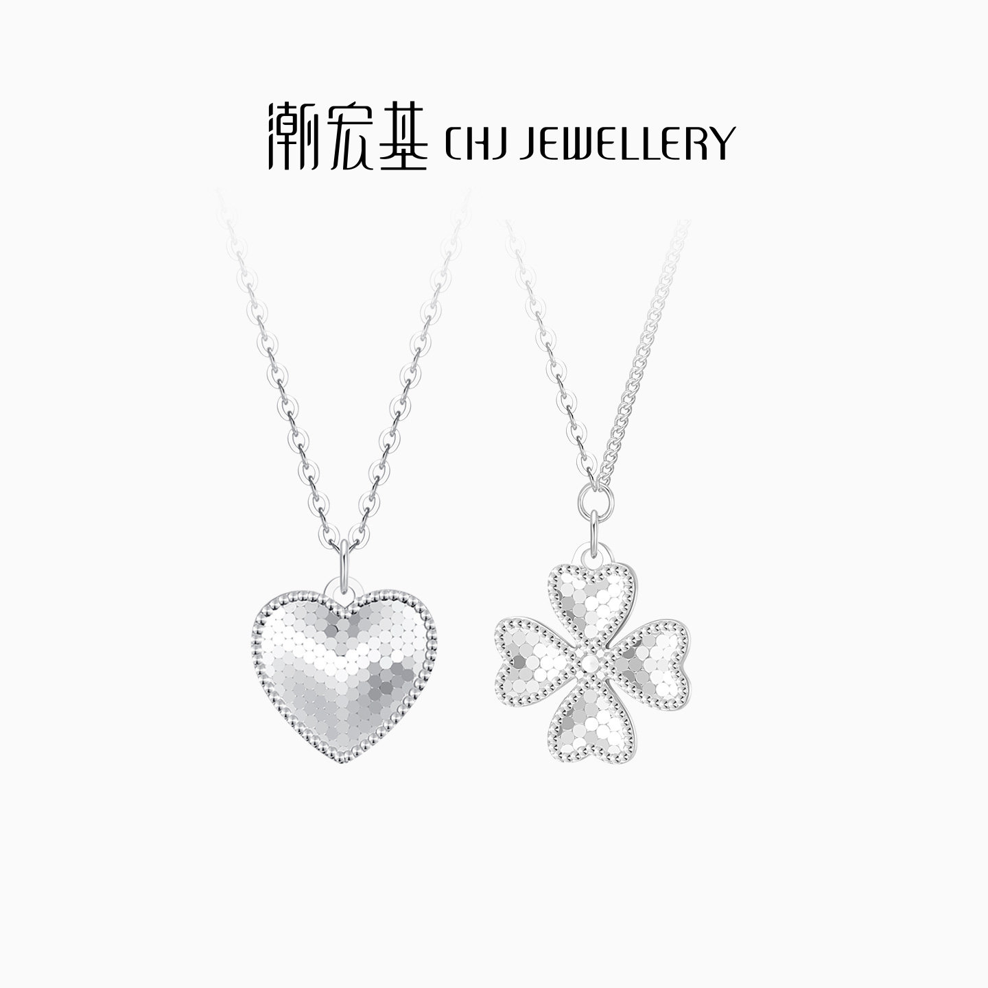 潮宏基小确幸s925银项链镜面银饰坠链爱心四叶草CNC生日礼物