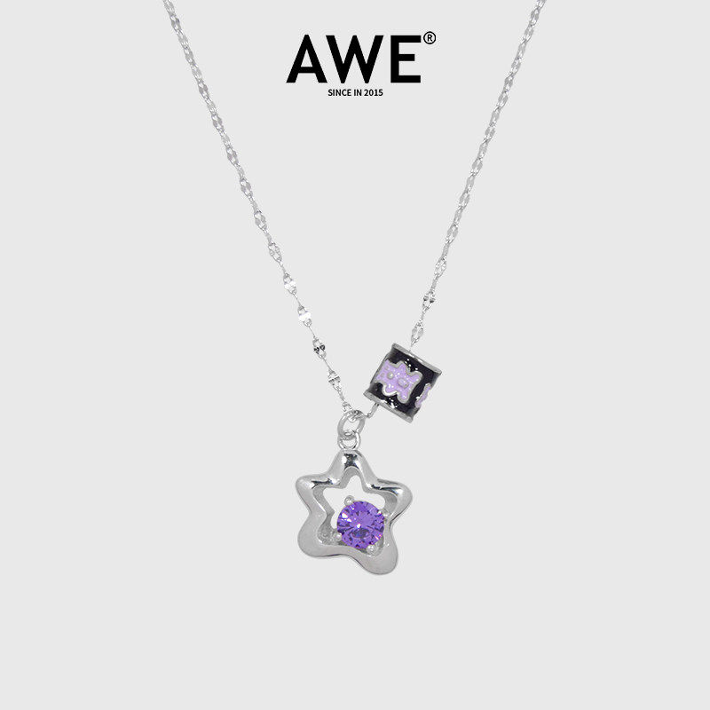 AWE镶钻星星S925银项链女十个勤天李耕耘同款轻奢小众锁骨链颈链