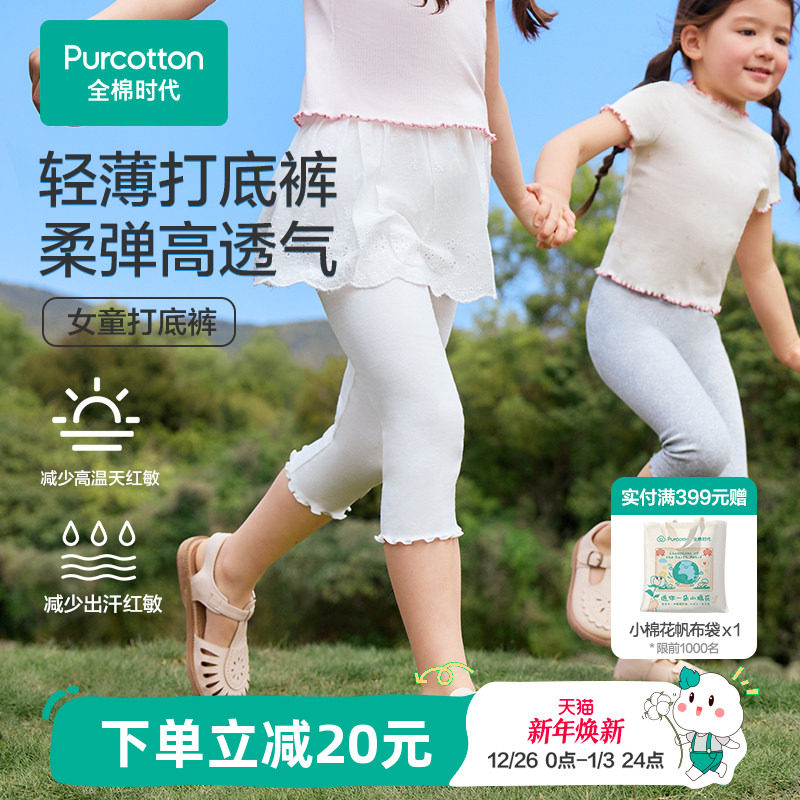 全棉时代女童裤子夏季薄款25年新款七分裤儿童打底裤五分抗菌短裤