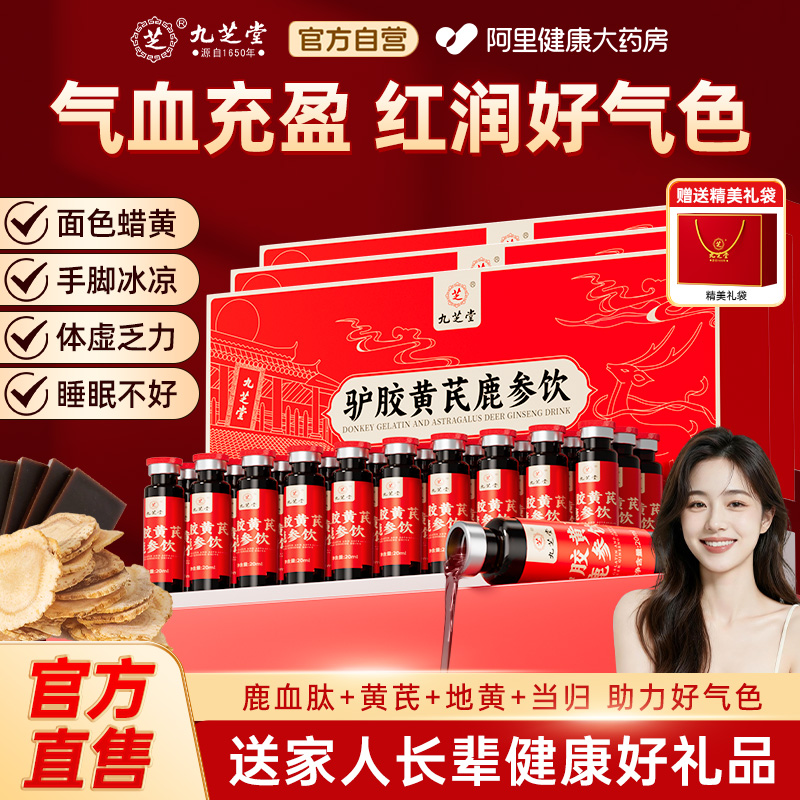 九芝堂驴胶黄芪鹿参饮阿胶补气血不足口服液女士贫血送人营养礼品