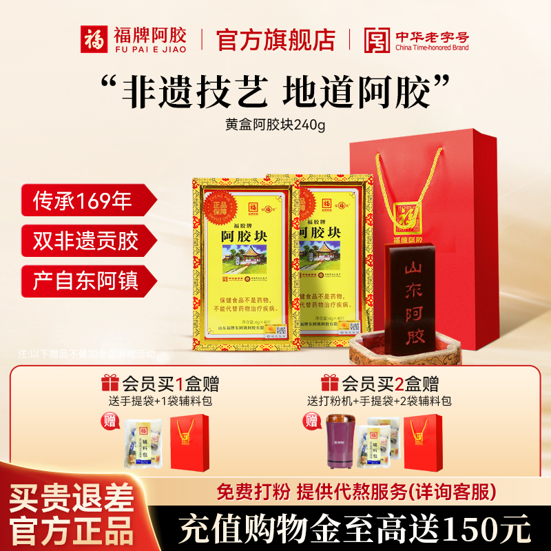 福牌阿胶块125g补益气血养血润燥双补女驴胶官方旗舰店正品礼盒
