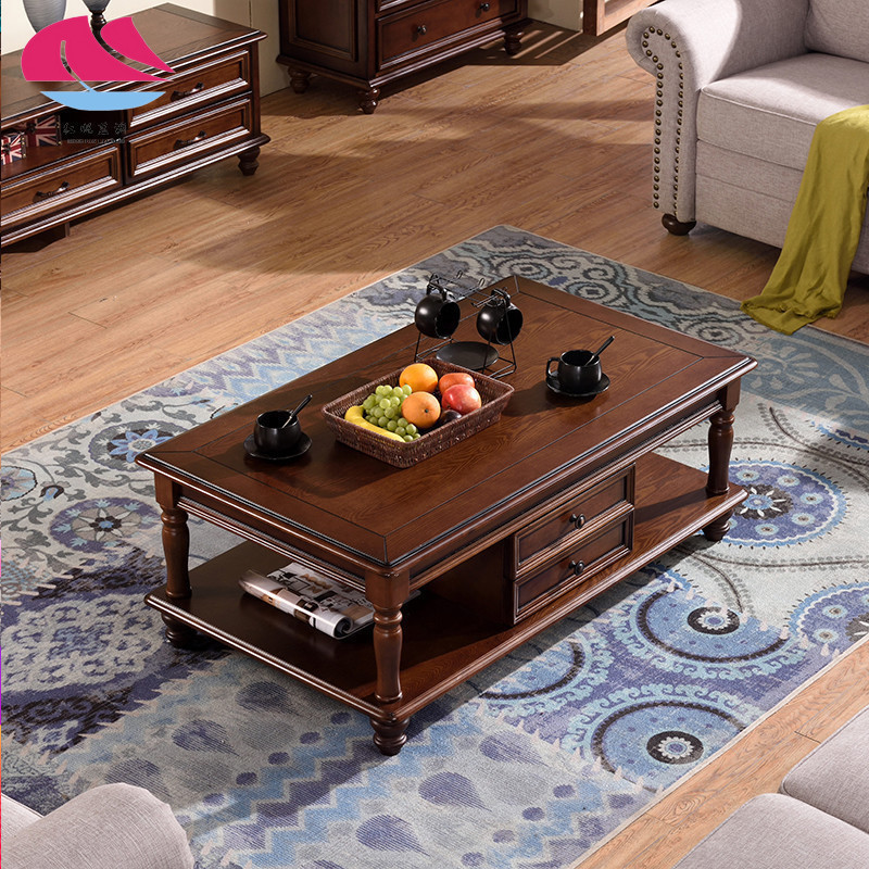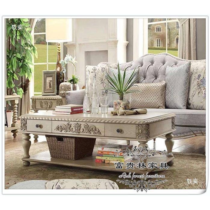 美式乡村电视柜茶几组合轻奢风客厅方形实木家用欧式简约家具套装