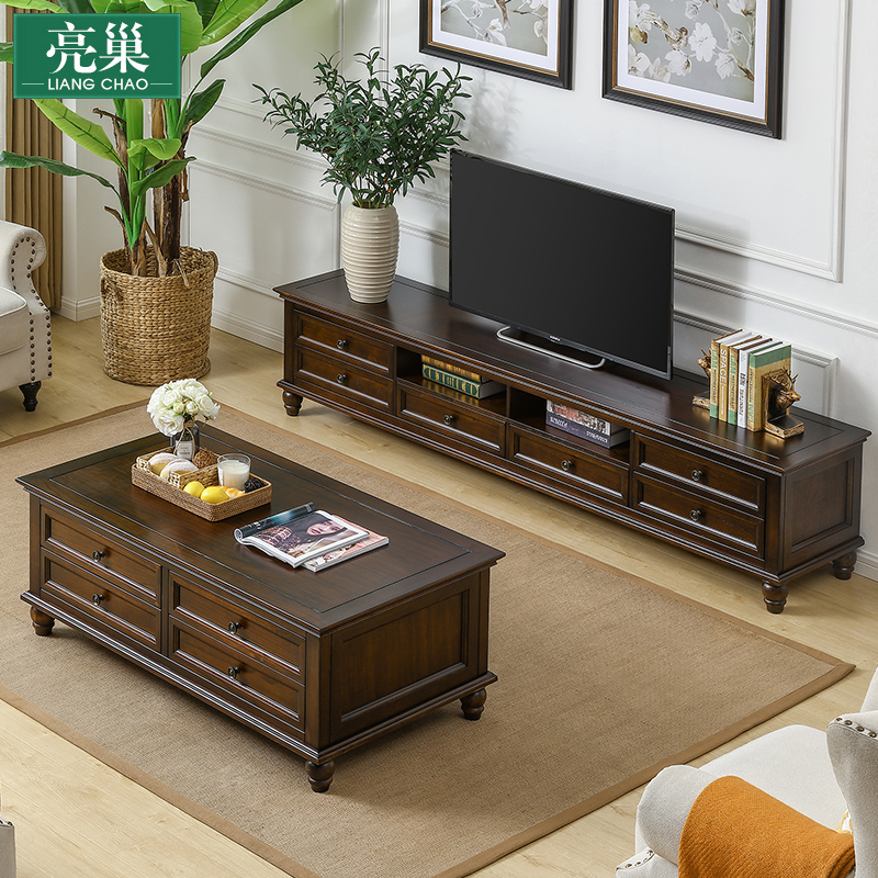 亮巢美式乡村电视柜茶几组合套装简约小户型地柜实木客厅电视机柜