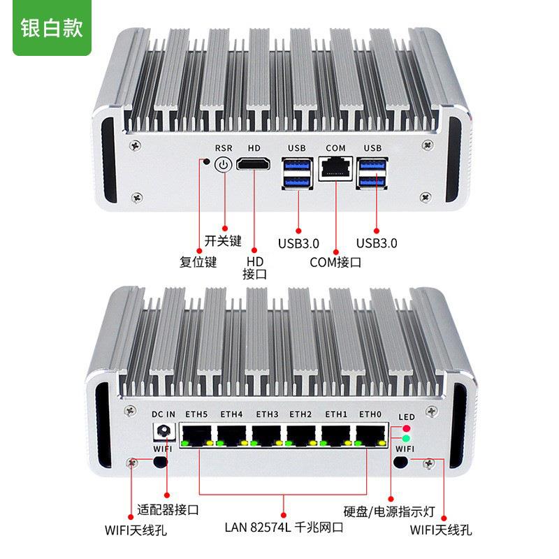 倍控j1900J5005蓝色迷你路由四网口千兆迷你路由器4口电脑无风扇嵌入式工控机I211千兆I226 2500M linux2.5