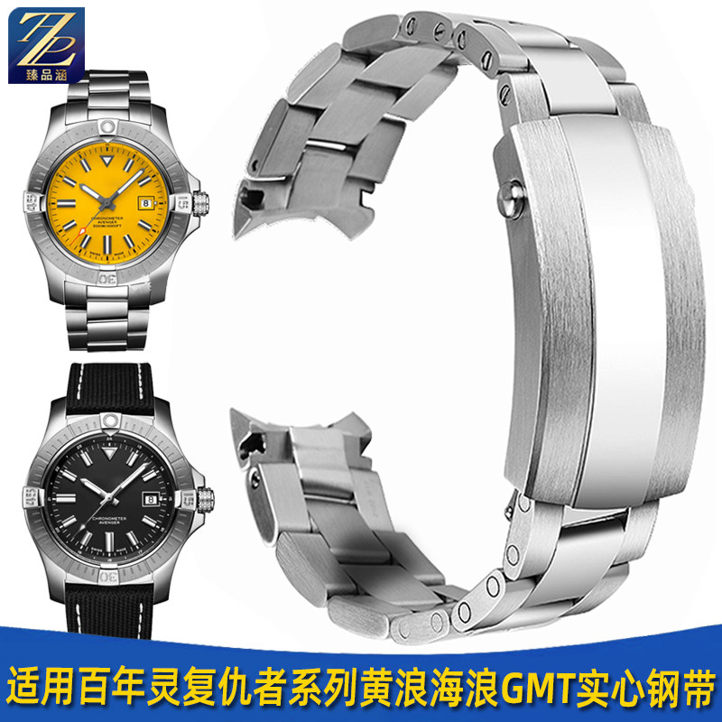 适用百年灵复仇者挑战者黄狼钢带超级海洋文化弧形不锈钢表带配件