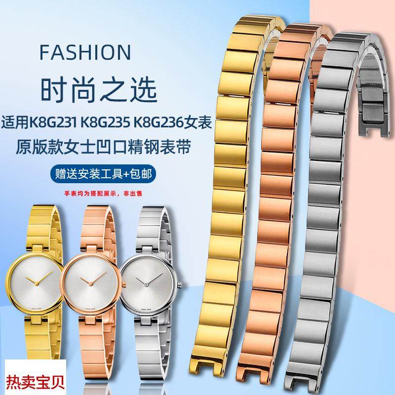 适用原装卓磊CK手表链女K8G236K8G231K8G235凹口不锈钢表带配件10