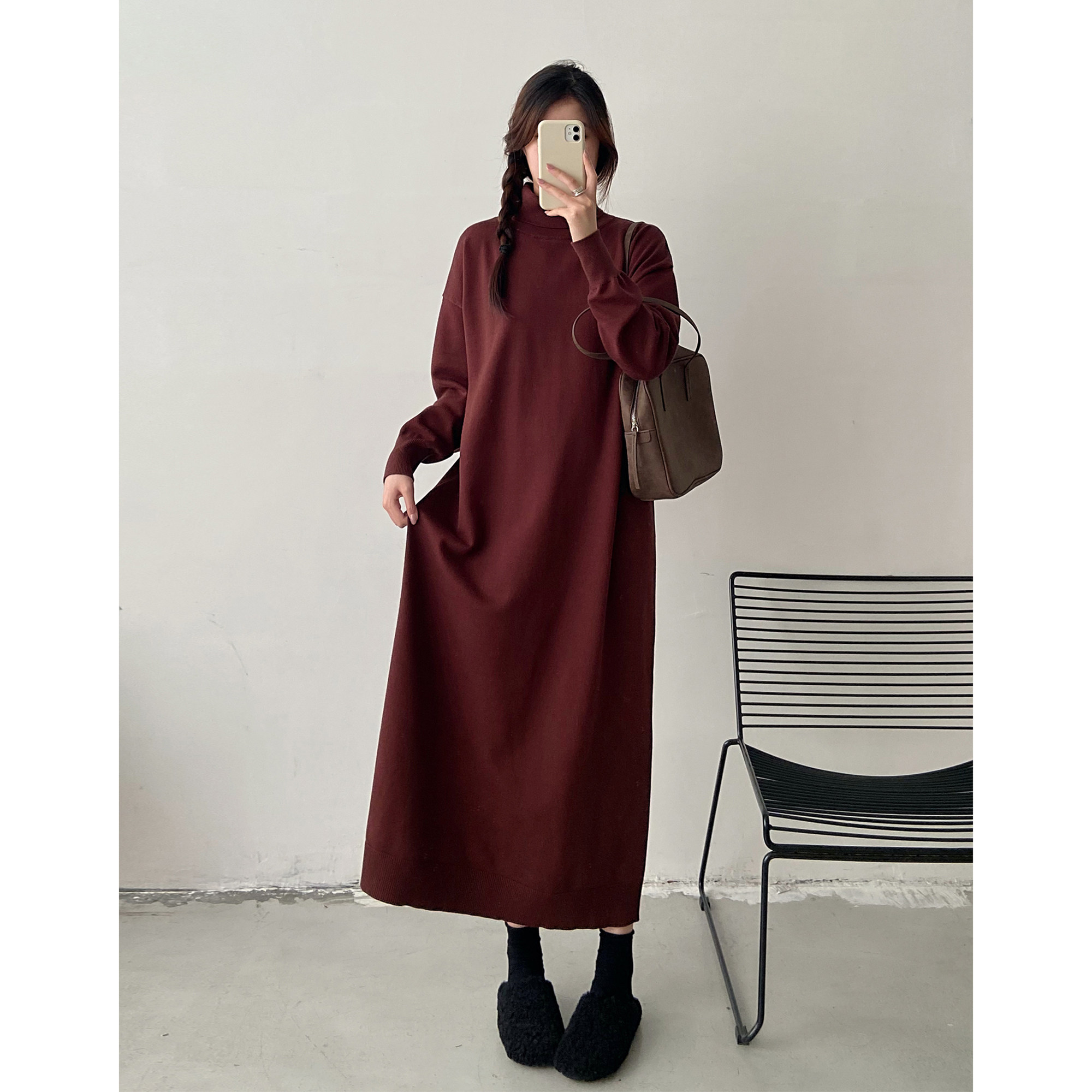 【墨墨家】2025冬款时尚百搭连衣裙中长款气质针织打底裙8622