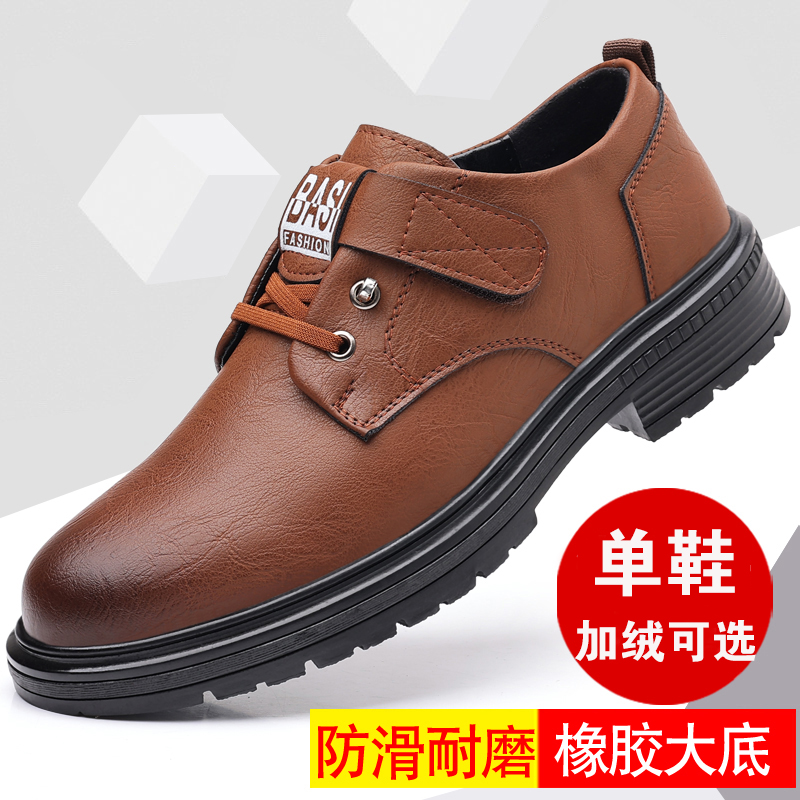 皮鞋男秋冬新款皮鞋厚底防滑户外工装鞋商务休闲鞋防滑中老年男鞋