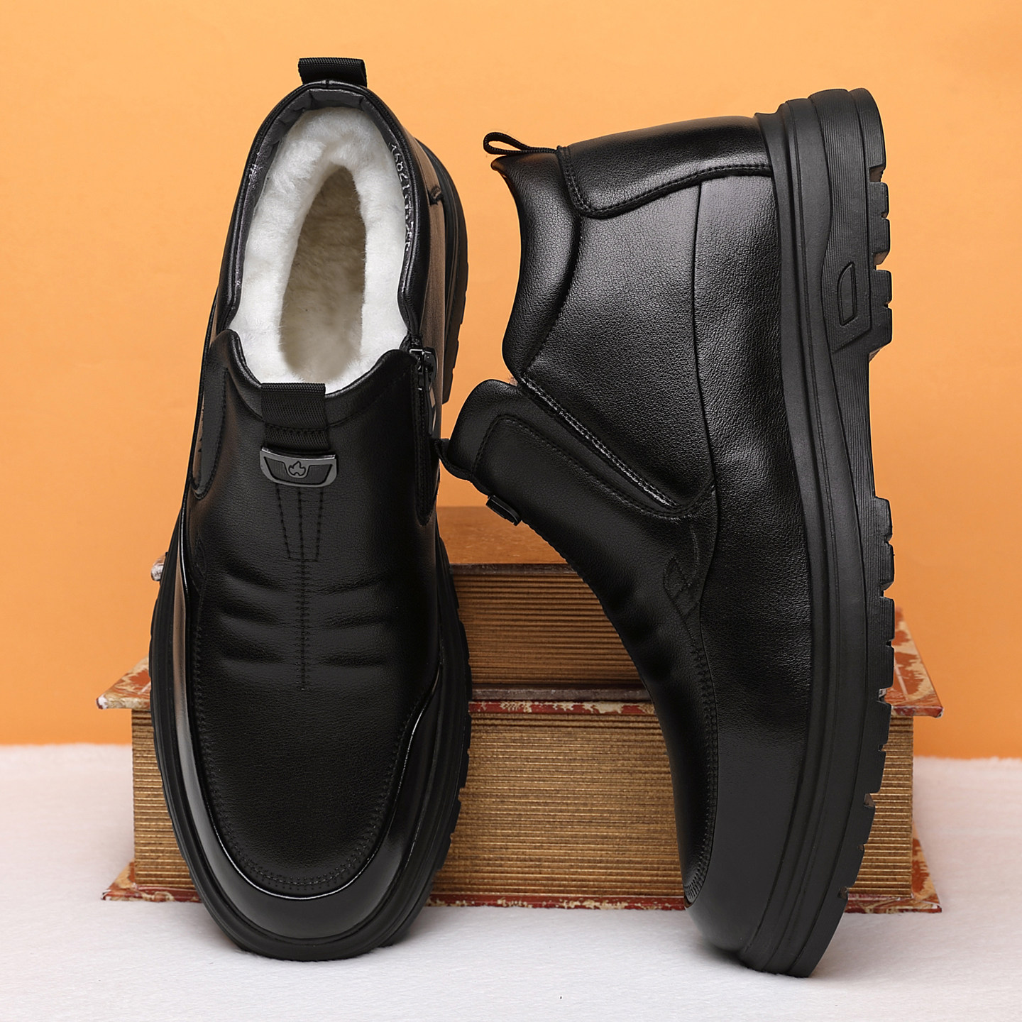【品牌断码】冬季加厚中老年男鞋真皮羊绒高帮棉鞋保暖抗寒软皮鞋