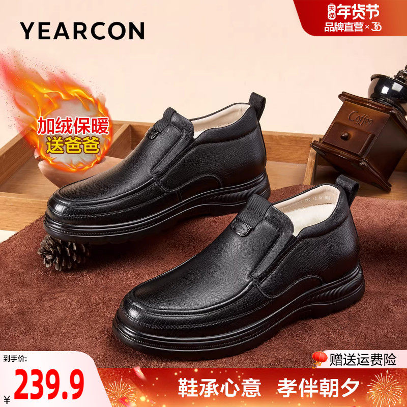 2025冬季新款加绒平跟防滑真皮休闲皮鞋男深口保暖舒适中老年男鞋