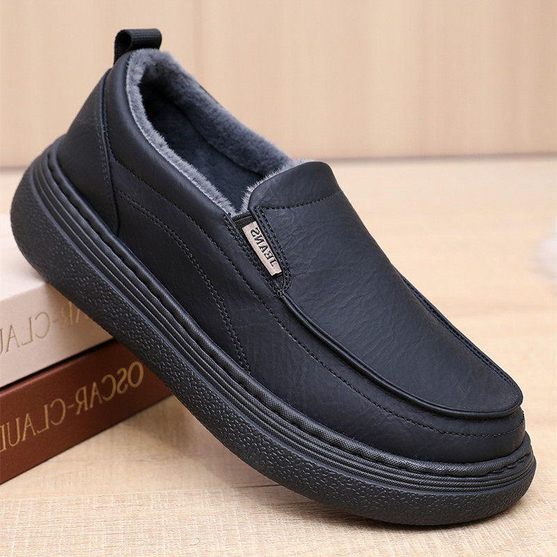 老人头皮鞋男真皮秋冬保暖加绒一脚蹬厚底商务休闲中老年爸爸男鞋