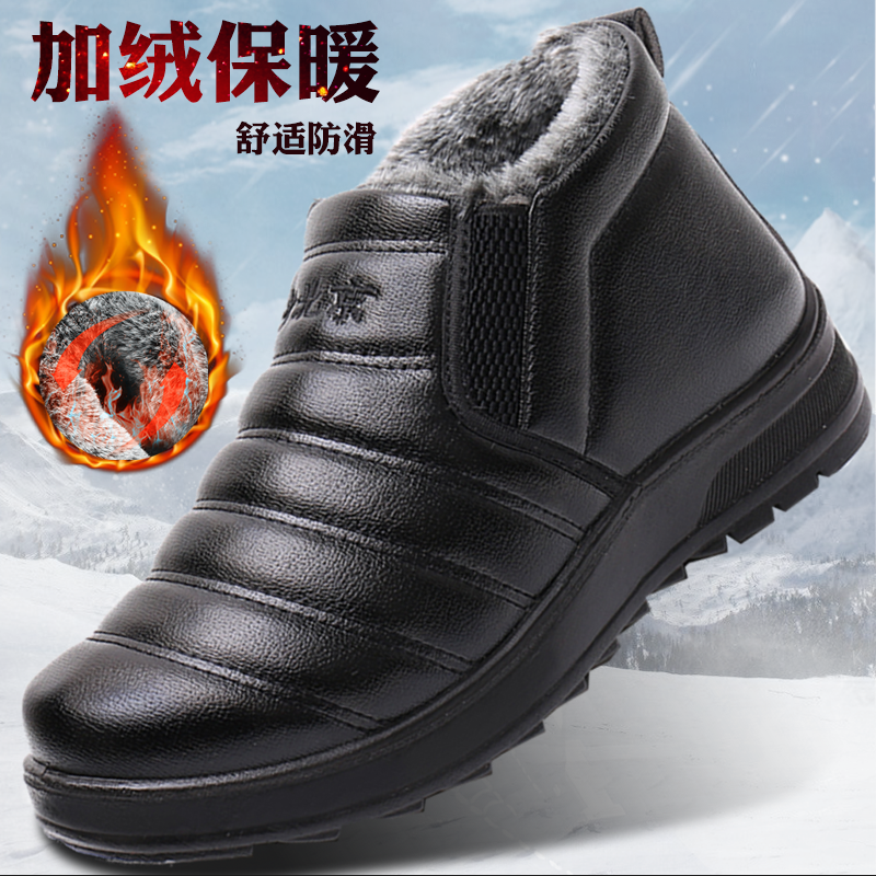 老北京布鞋男冬季加绒加厚老人棉鞋中老年男鞋防水防滑保暖爸爸鞋