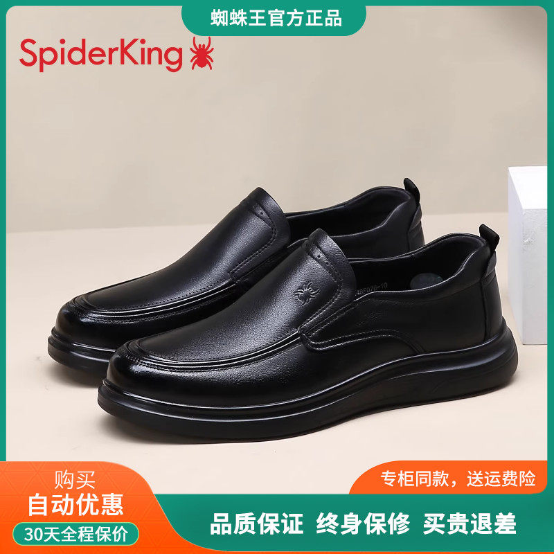 蜘蛛王休闲皮鞋男款2025新款真皮中老年男鞋一脚蹬软底爸爸鞋男款