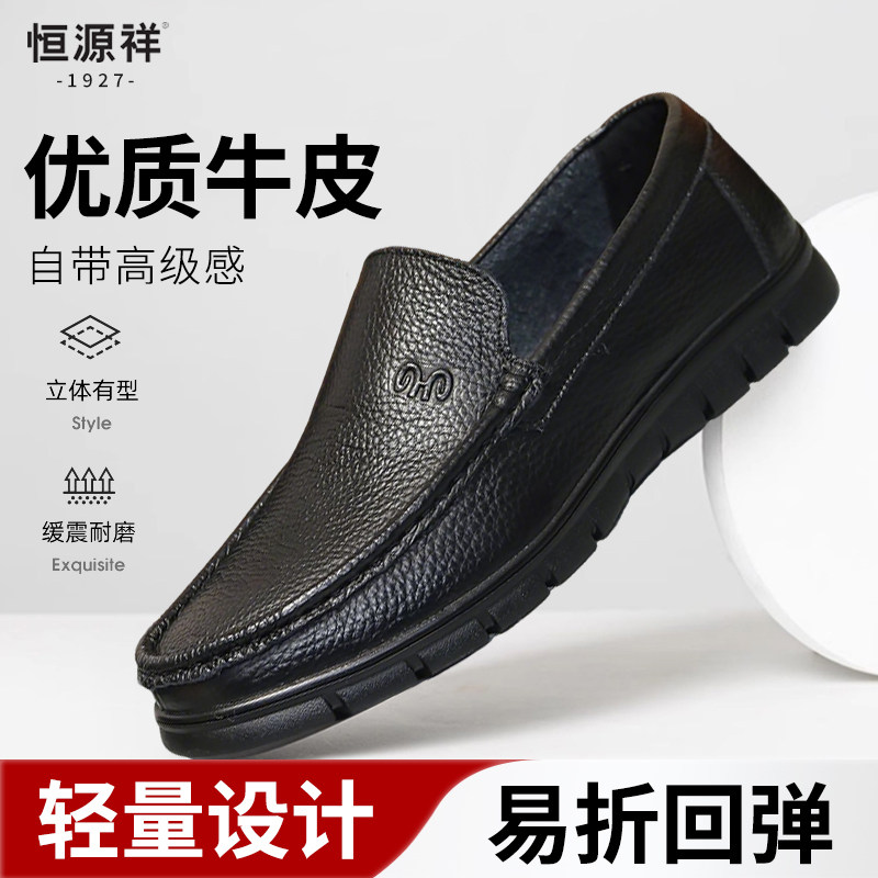 恒源祥中老年男鞋一脚蹬速穿秋冬季真皮商务休闲皮鞋男士软底舒适
