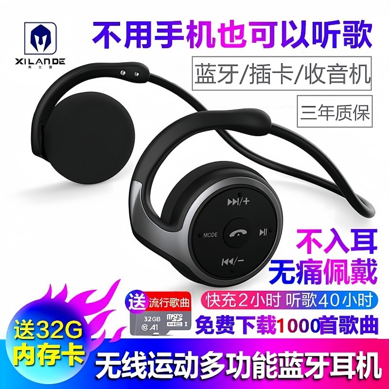 希兰德无线运动跑步蓝牙耳机插卡MP3收音机通话挂耳不入耳头戴式