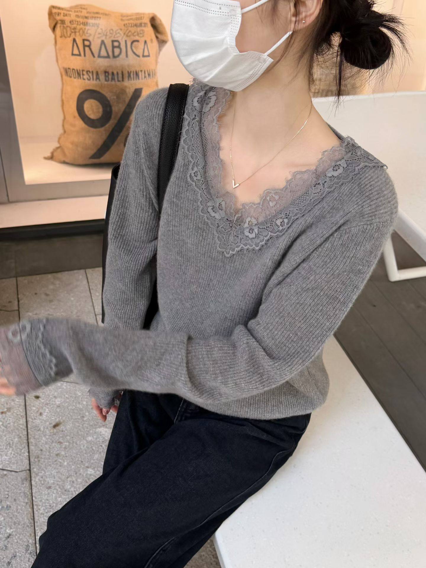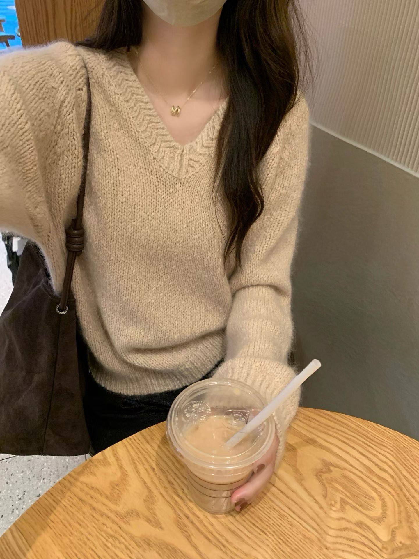 - 韩国v领毛衣