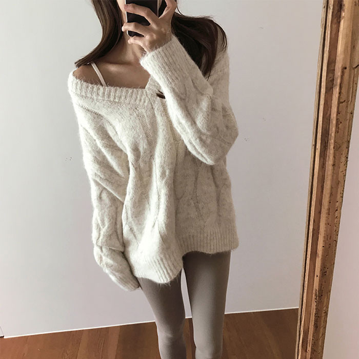 - 韩版宽松套头毛衣女v领