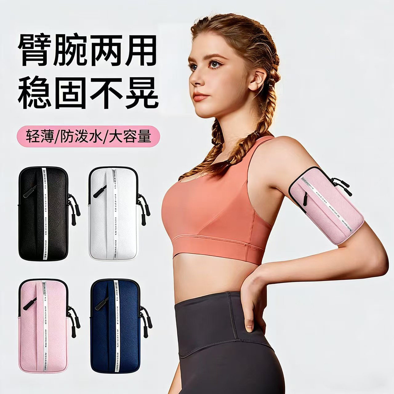跑步手机臂包男女运动健身装备胳膊收纳手机袋轻薄防水手腕包臂套