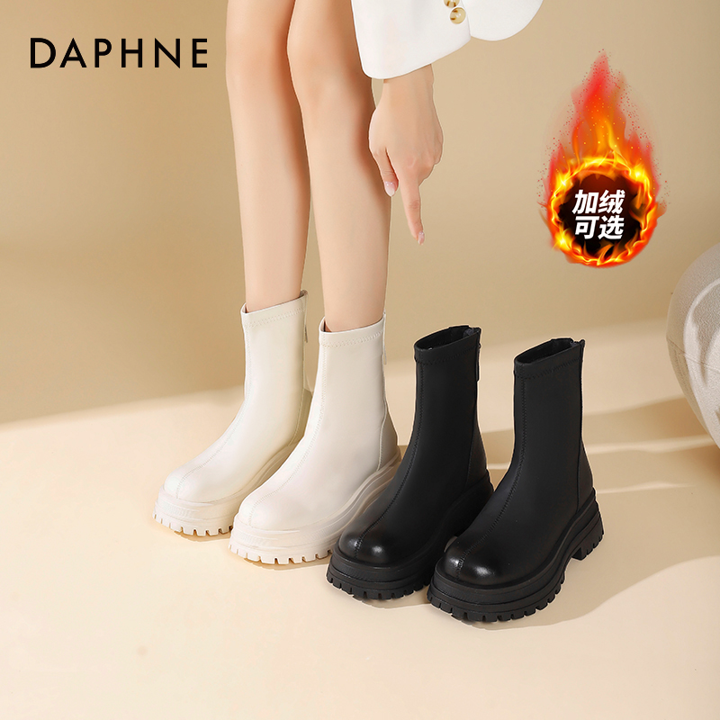 达芙妮白色短靴女2025新款秋季短靴子女单靴女鞋瘦瘦靴厚底马丁靴