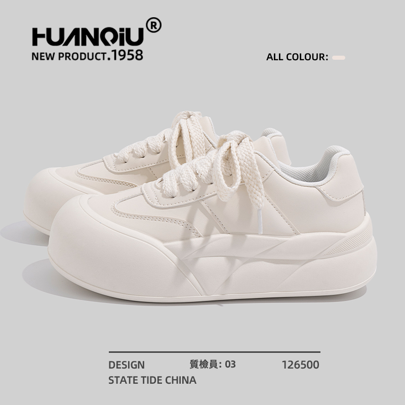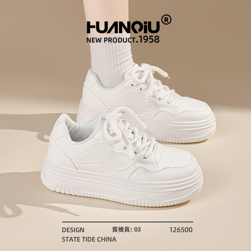 环球厚底白色板鞋女款2025新款女鞋春秋小白鞋百搭小众休闲增高鞋