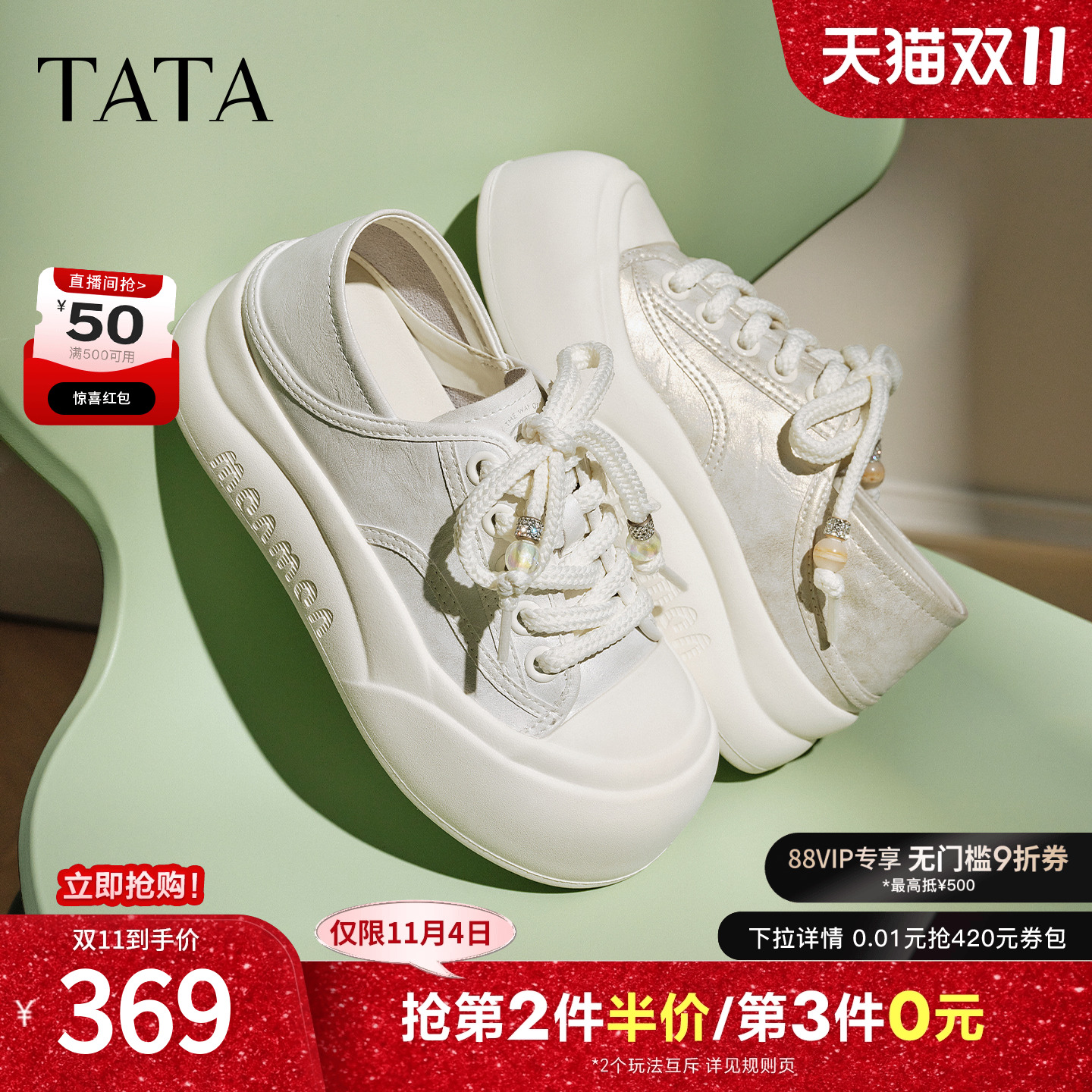 TATA他她女鞋2025冬季新款运动鞋百搭休闲鞋厚底白色板鞋CP303CM5