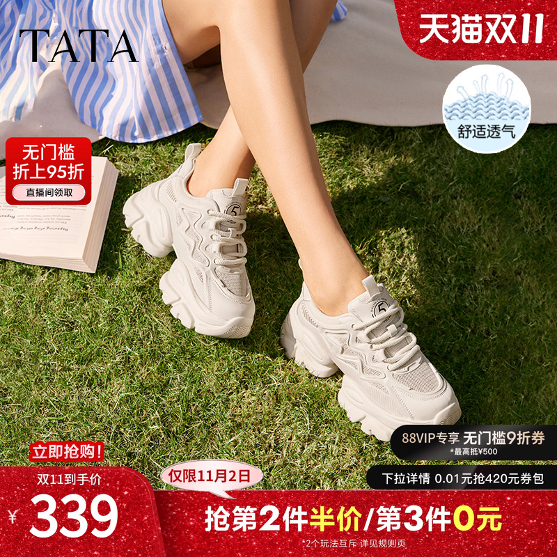 TATA他她老爹鞋2025新款女鞋休闲鞋厚底增高鞋子白色轻便运动鞋