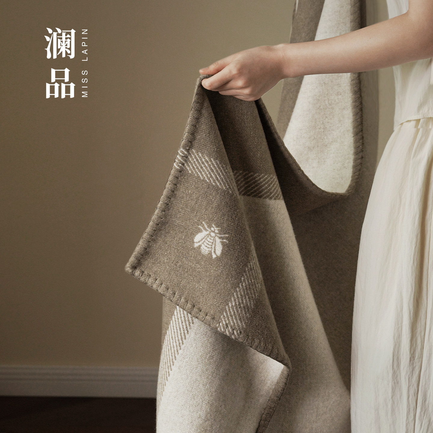 澜品『蜂语』100%纯羊毛盖毯侘寂风氛围感沙发毯轻奢高级感羊毛毯