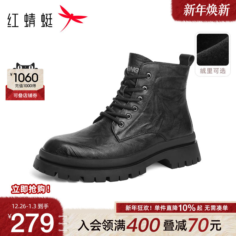 红蜻蜓男鞋秋冬新款男士高帮棉鞋商务皮靴休闲皮鞋真皮马丁靴男款