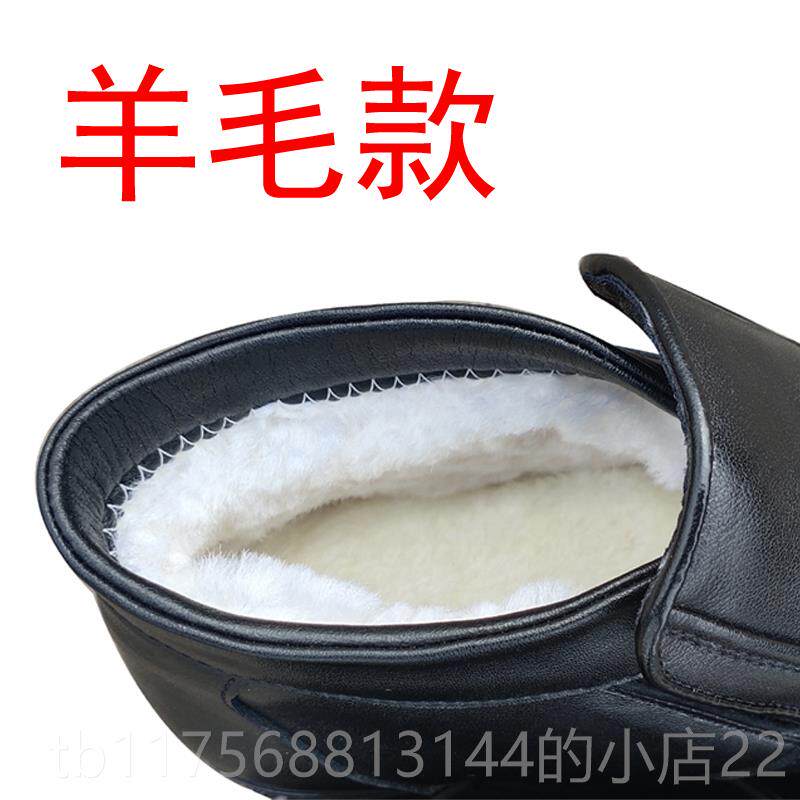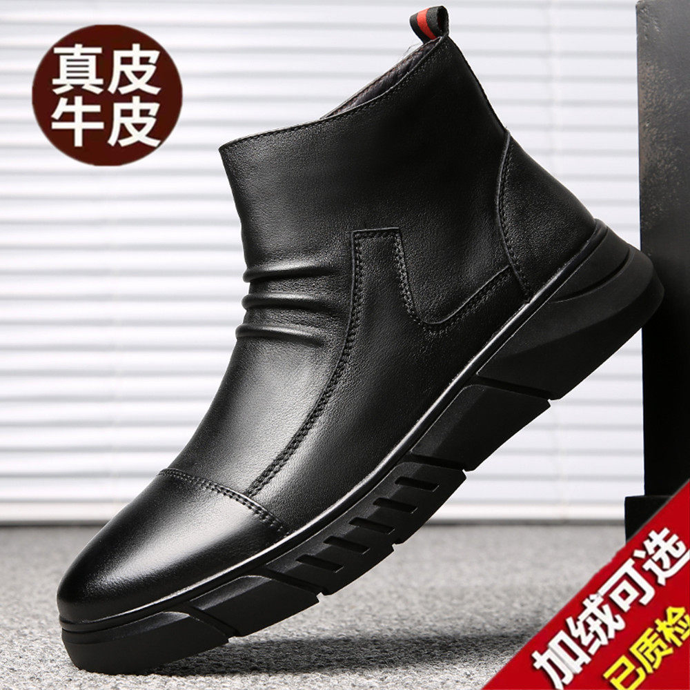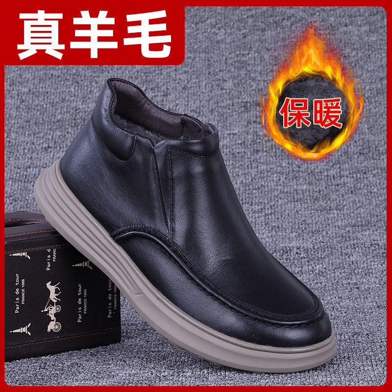 25冬季男士棉皮鞋真皮休闲高帮鞋羊毛保暖中老年软底加绒套脚皮鞋