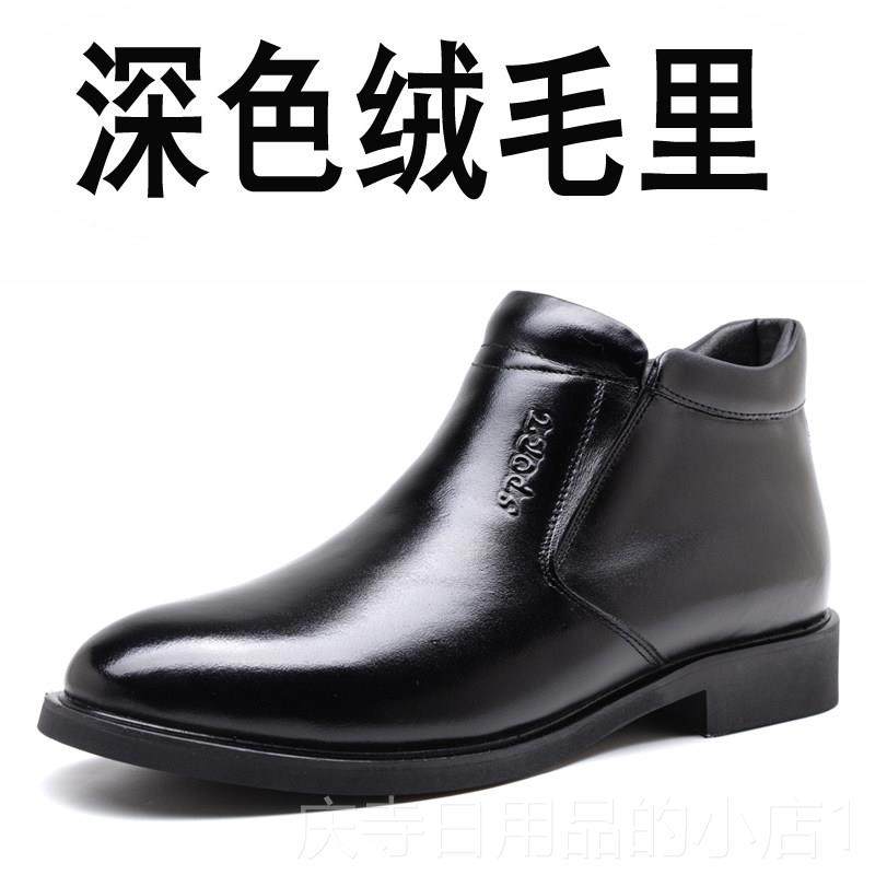 冬季男士皮鞋男真皮正装内增高加绒保暖棉鞋黑色商务休闲爸爸鞋子
