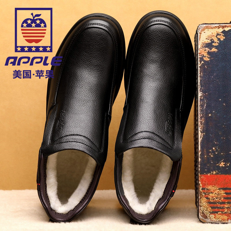 苹果/APPLE男士棉皮鞋真皮冬季保暖加绒头层牛皮棉鞋正装商务高帮