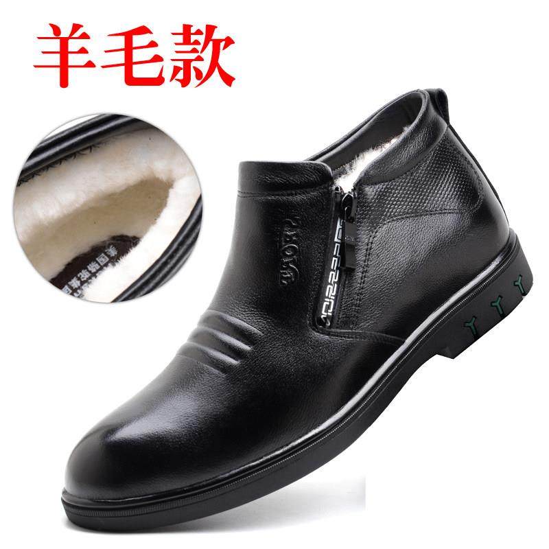 老人头皮鞋男冬季真皮休闲高帮鞋男棉鞋中老年羊毛保暖加绒爸爸鞋
