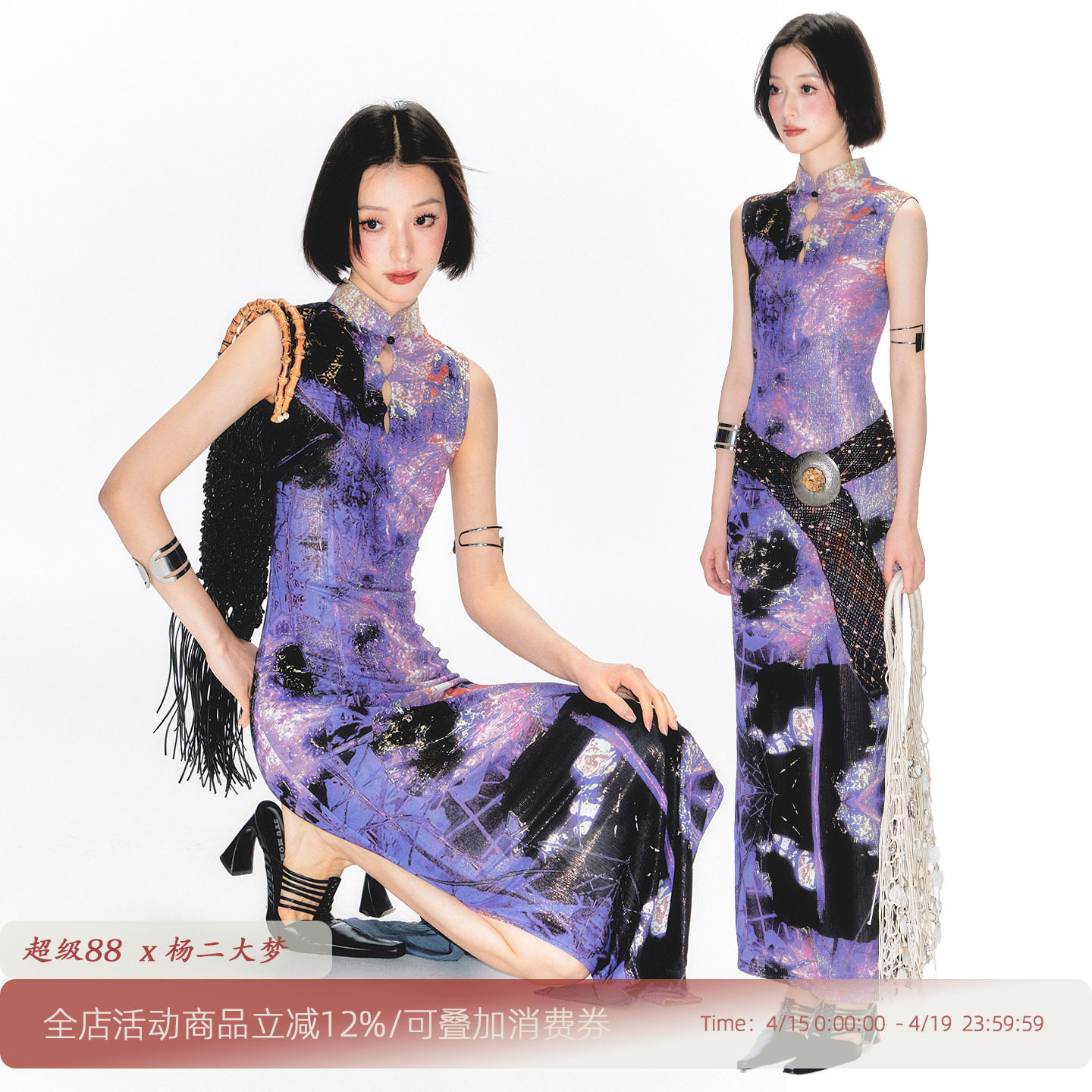 SEEYOULATER 新中式复古印花修身高领无袖连衣裙小众旗袍鱼尾长裙