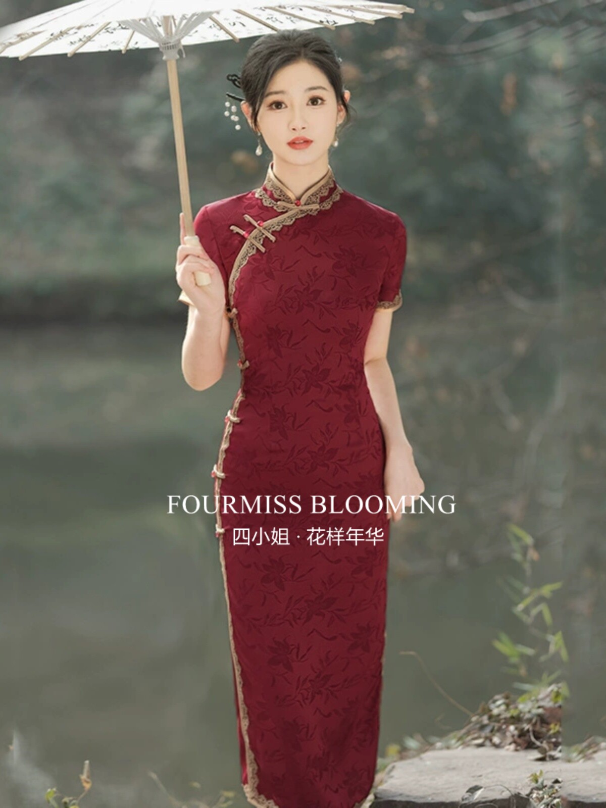 【花样年华】国风旗袍|酒红色长款改良2026中式女老上海复古修身