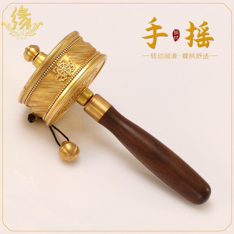 藏族转筒经桶六字真言小手摇西藏随身摆件转金轮实木手柄多款可选