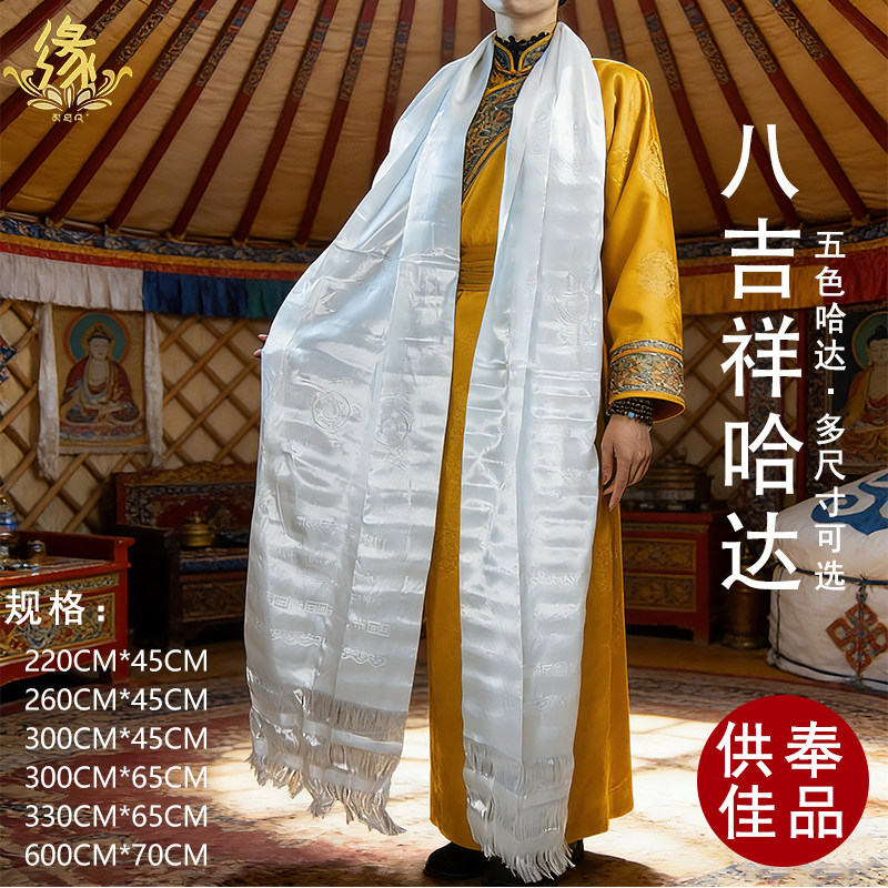 蒙古五色八吉祥哈达提花哈达西藏民族风藏族礼仪用品多尺寸批量发