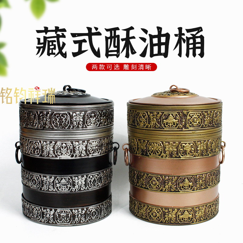 藏式打茶桶酥油茶合金酥油桶实木打茶棒民族风糌粑盒摆件藏族复古