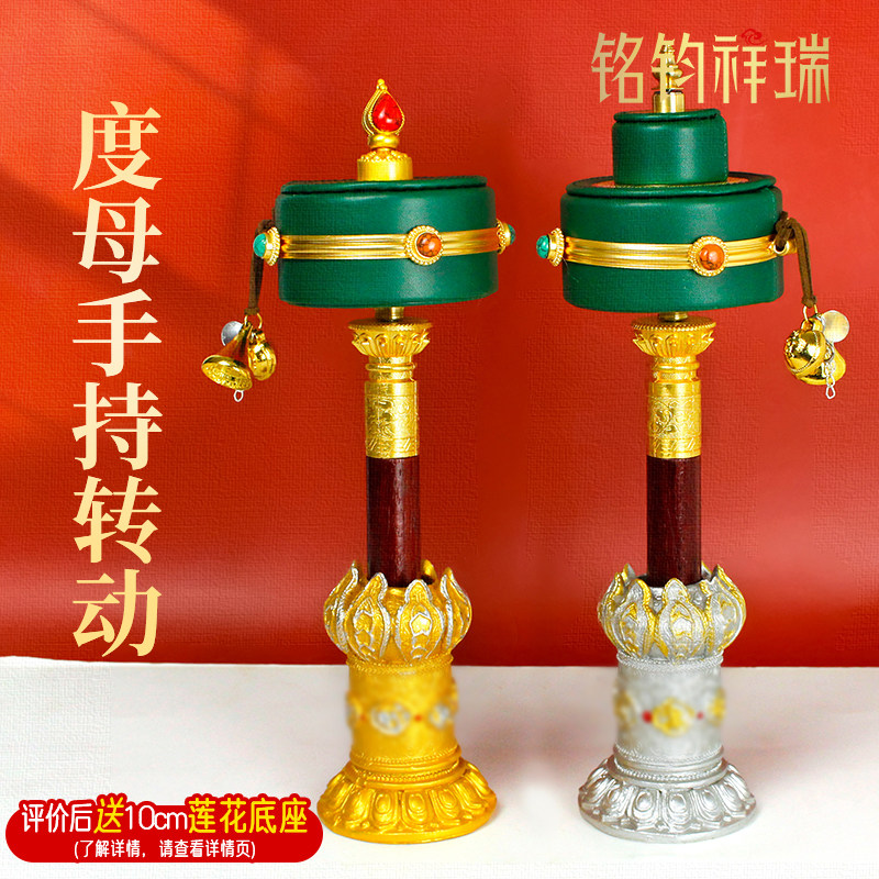 度母手摇转筒藏式皮革手持转动桶静音便携民族风藏族旅拍装饰摆件