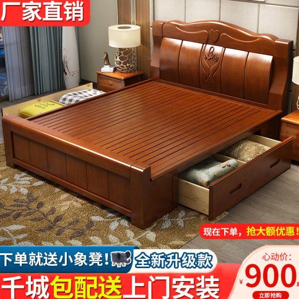 实木床1.8米现代简约主卧储物双人床1.5单人经济型家用收纳高箱床