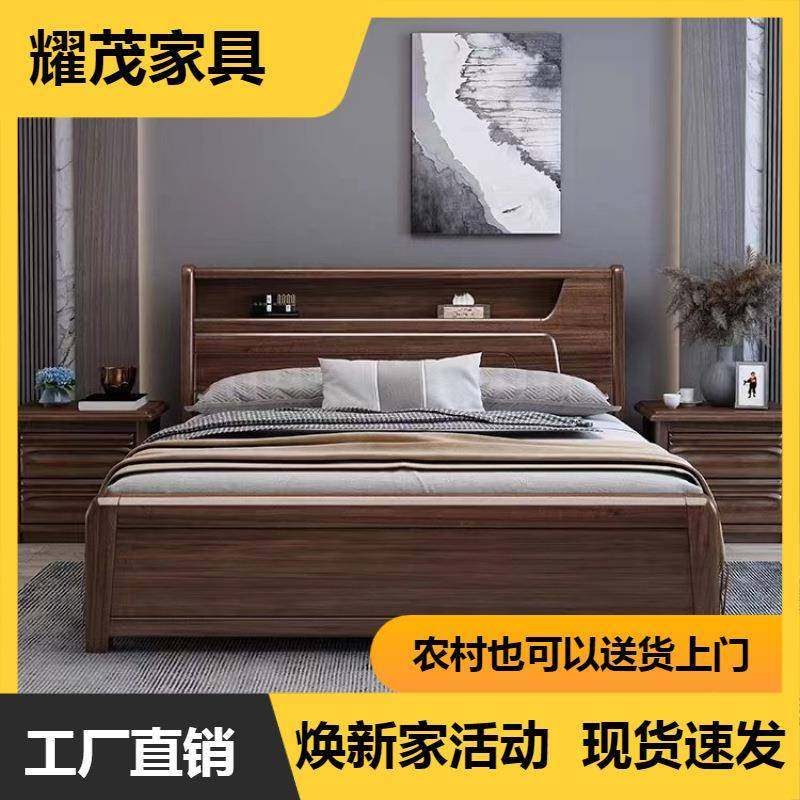 胡桃木实木床1.8现代简约工厂直销新中式1.5米主卧气压高箱储物床