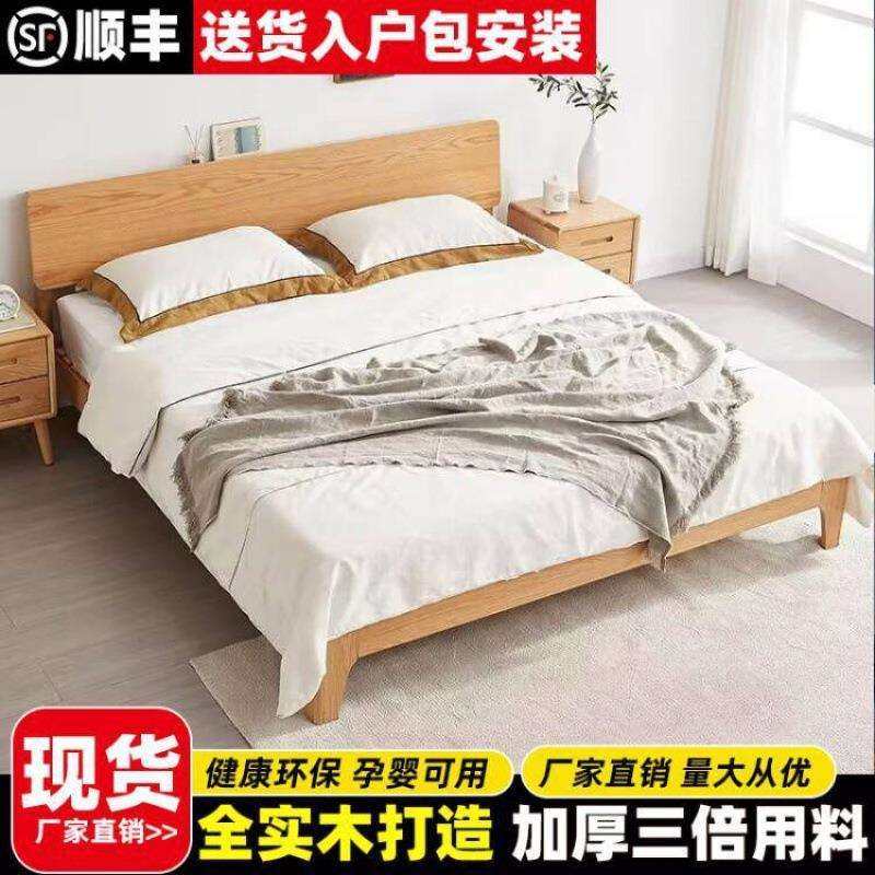 实木床现代简约1.8m主卧家用双人床胡桃橡木床出租房1米5单人床架