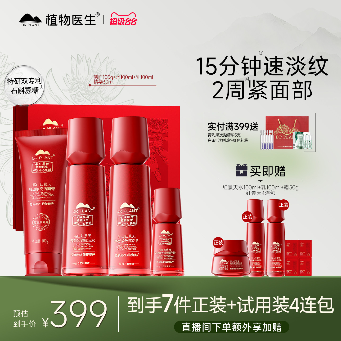 植物医生官方旗舰店补水保湿套组红景天抗皱紧致水乳护肤套装正品