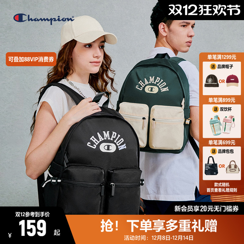 Champion冠军双肩包女秋冬新款书包初中帆布包双肩背包男高中学生