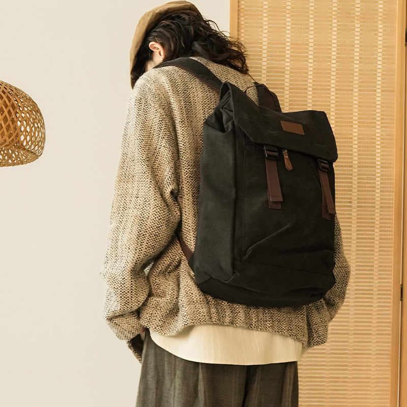 原创小众设计水洗帆布书包女大学生简约复古高中学生背包男双肩包